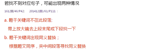 若找不到,先去定位下一题,再根据下一题定位 来确定上一题 寻找同义替换的范围