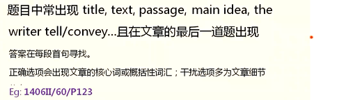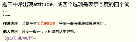 作者观点:第一人称、转折、主观陈述若是全文态度:在末段或每段的首句步骤: